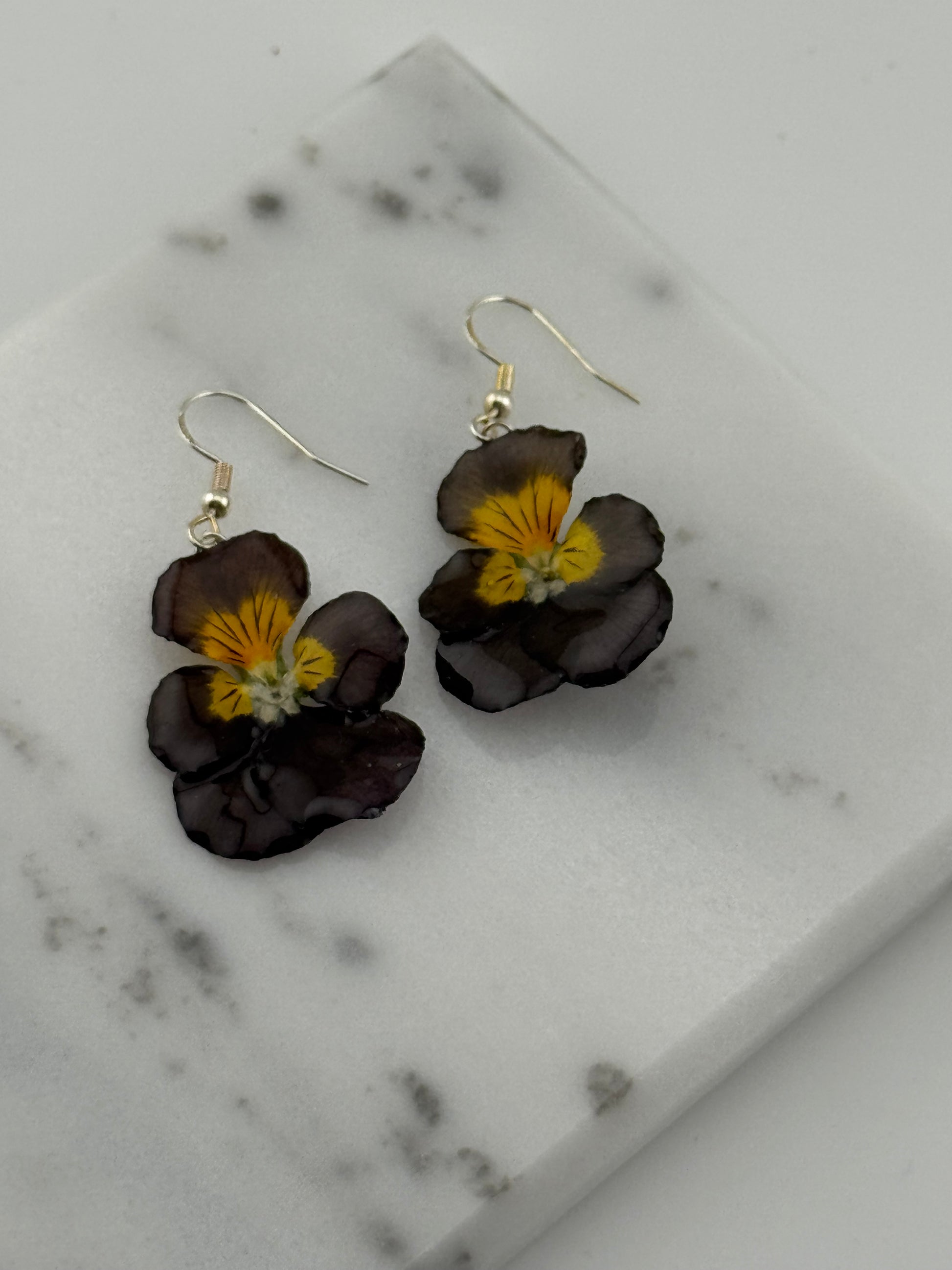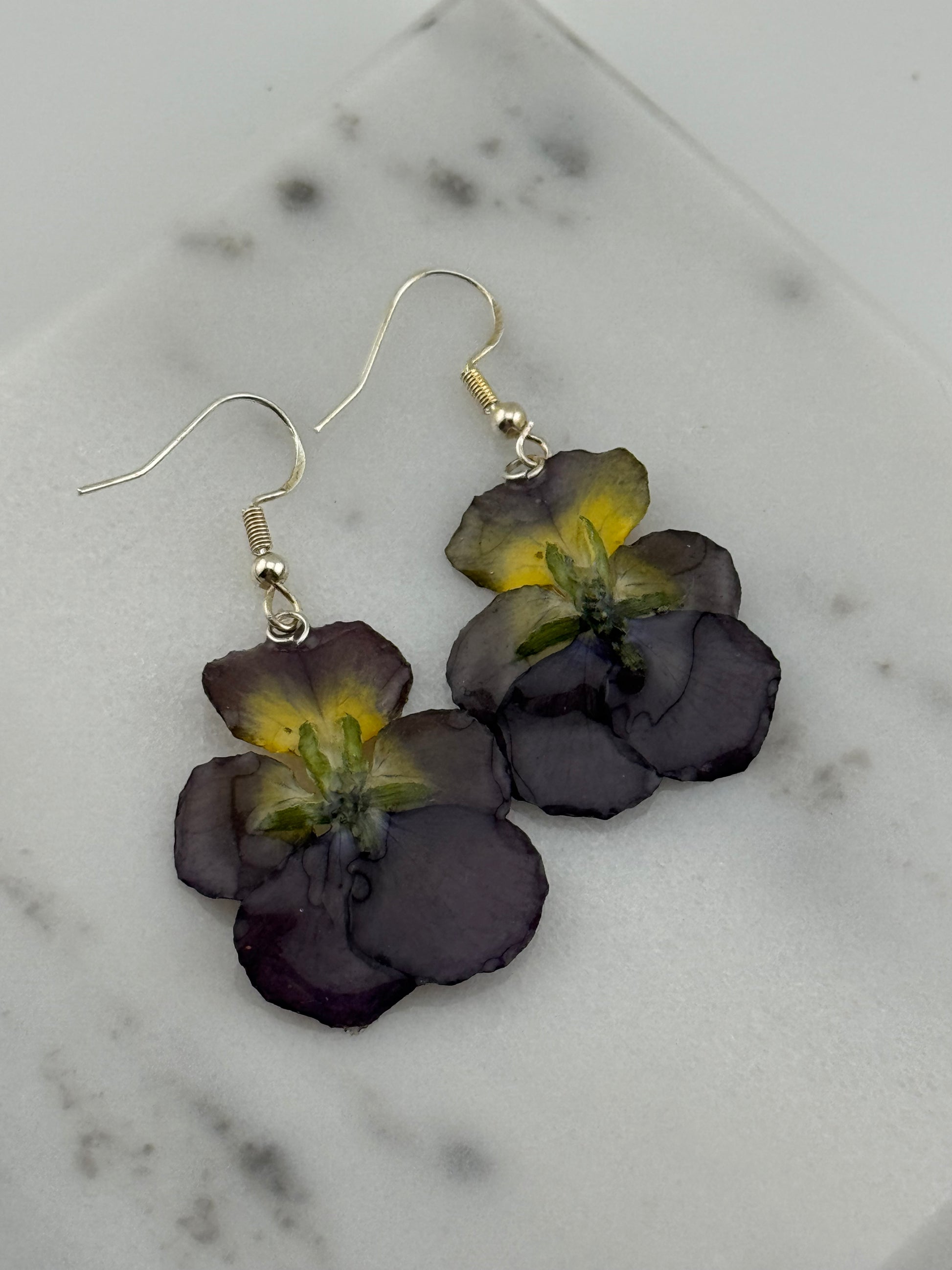 Echte Blütenohrringe aus Hornveilchen - Handgefertigt mit UV Harz #453