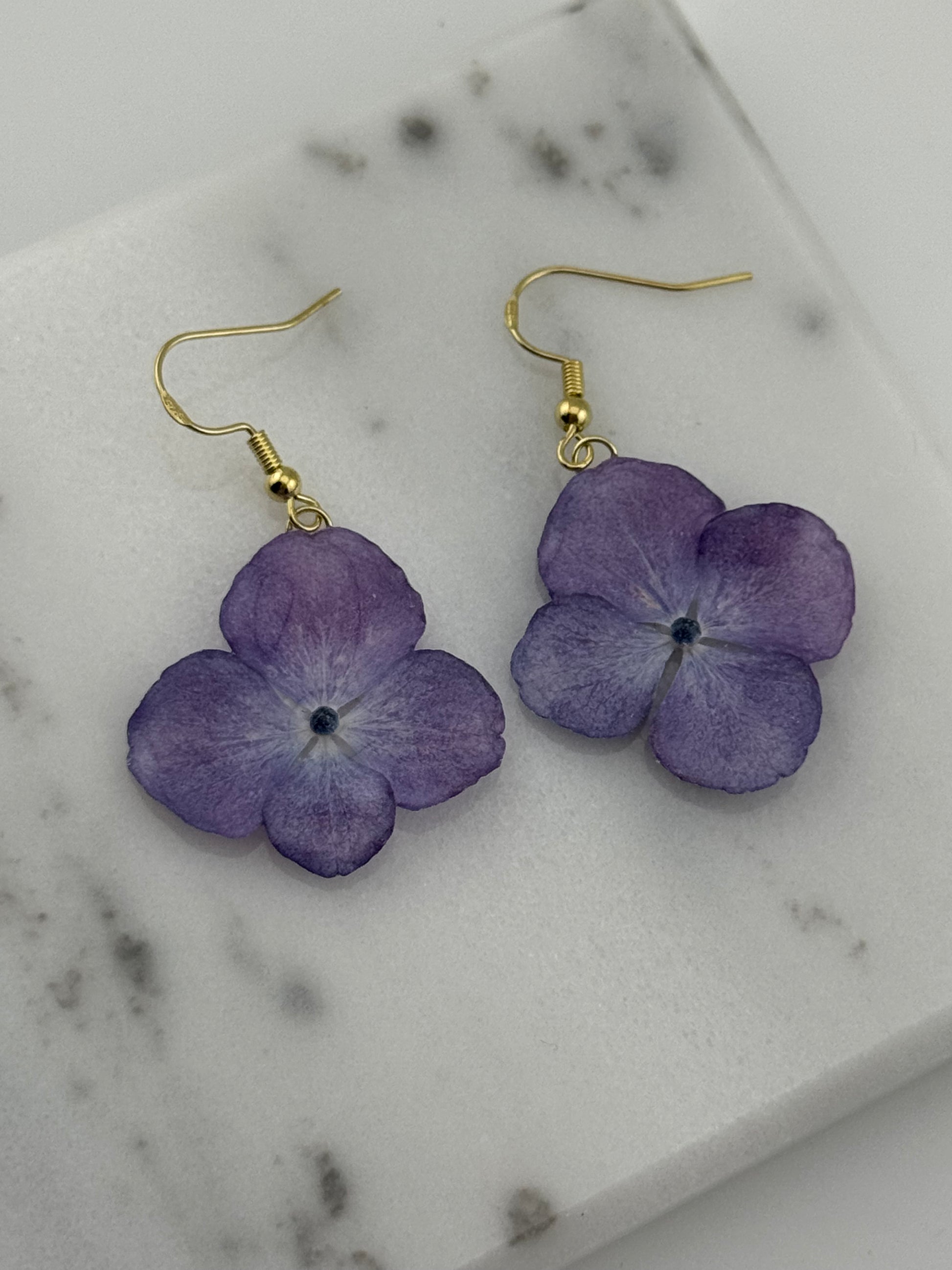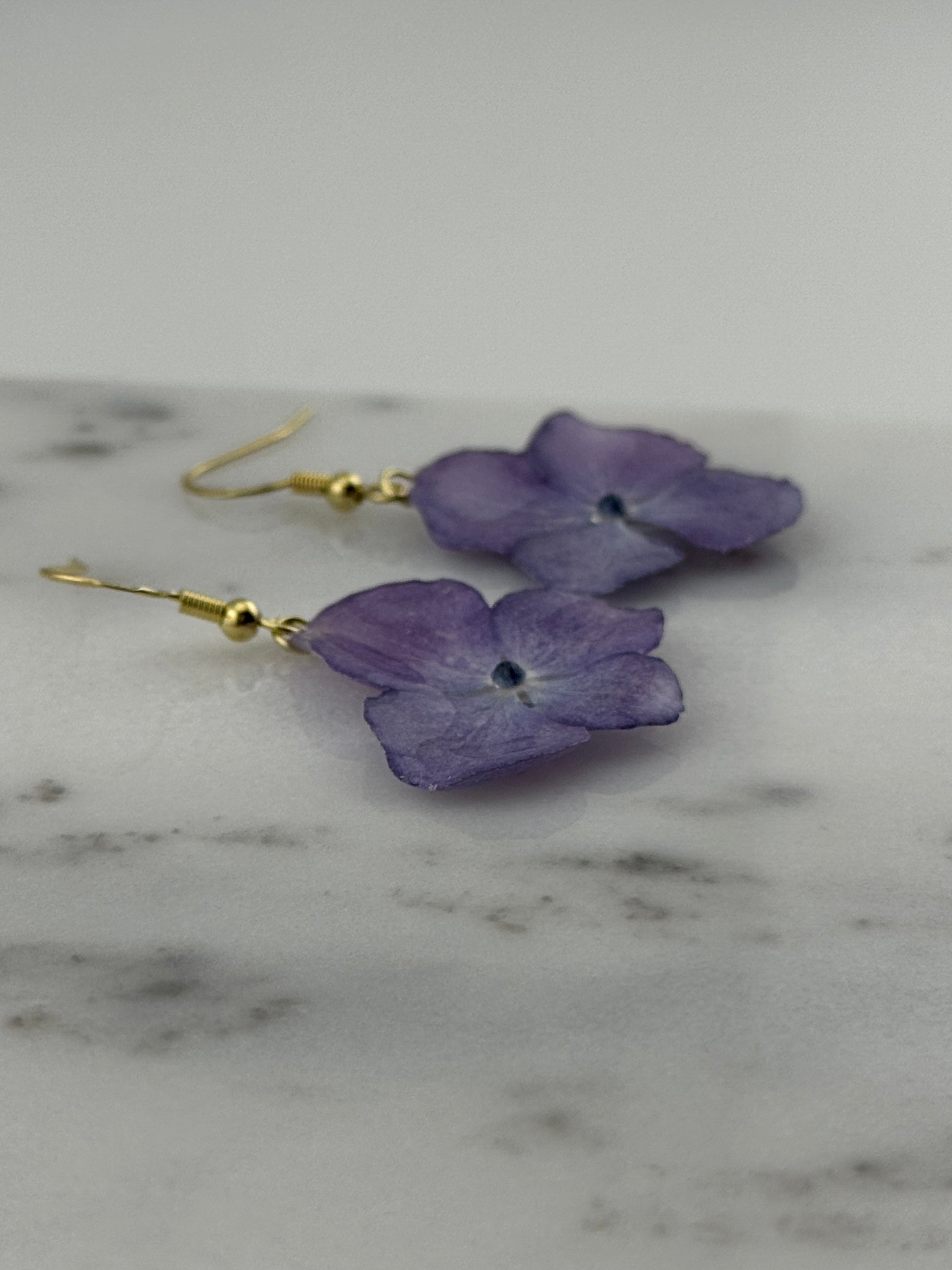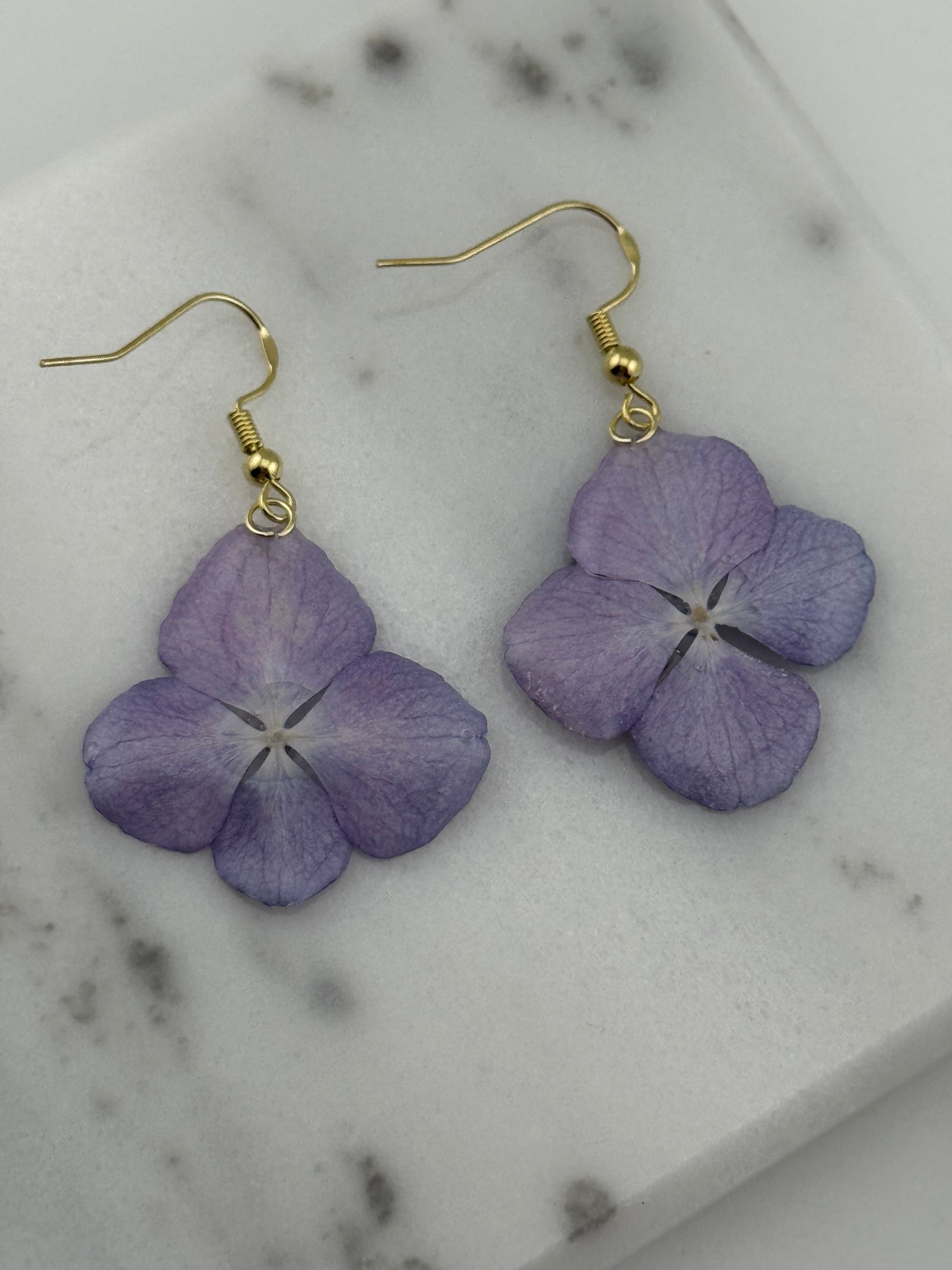 Echte Blütenohrringe aus Hortensien- Handgefertigt mit UV Harz #457