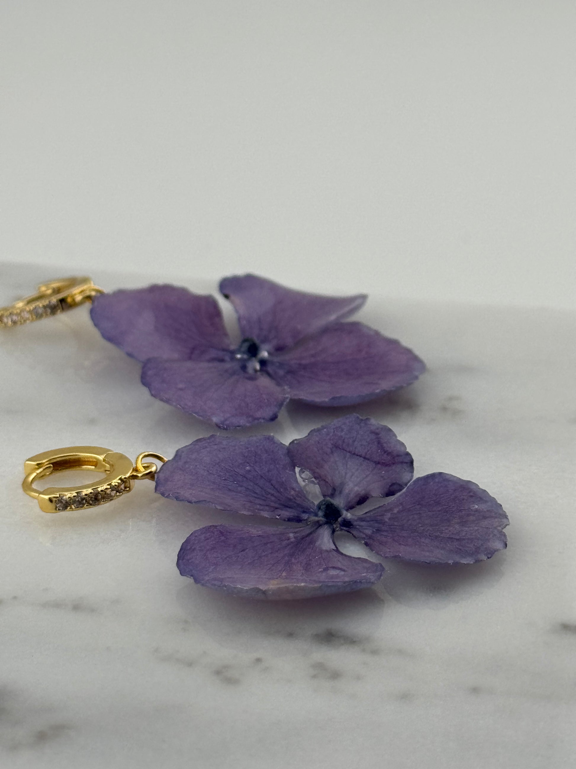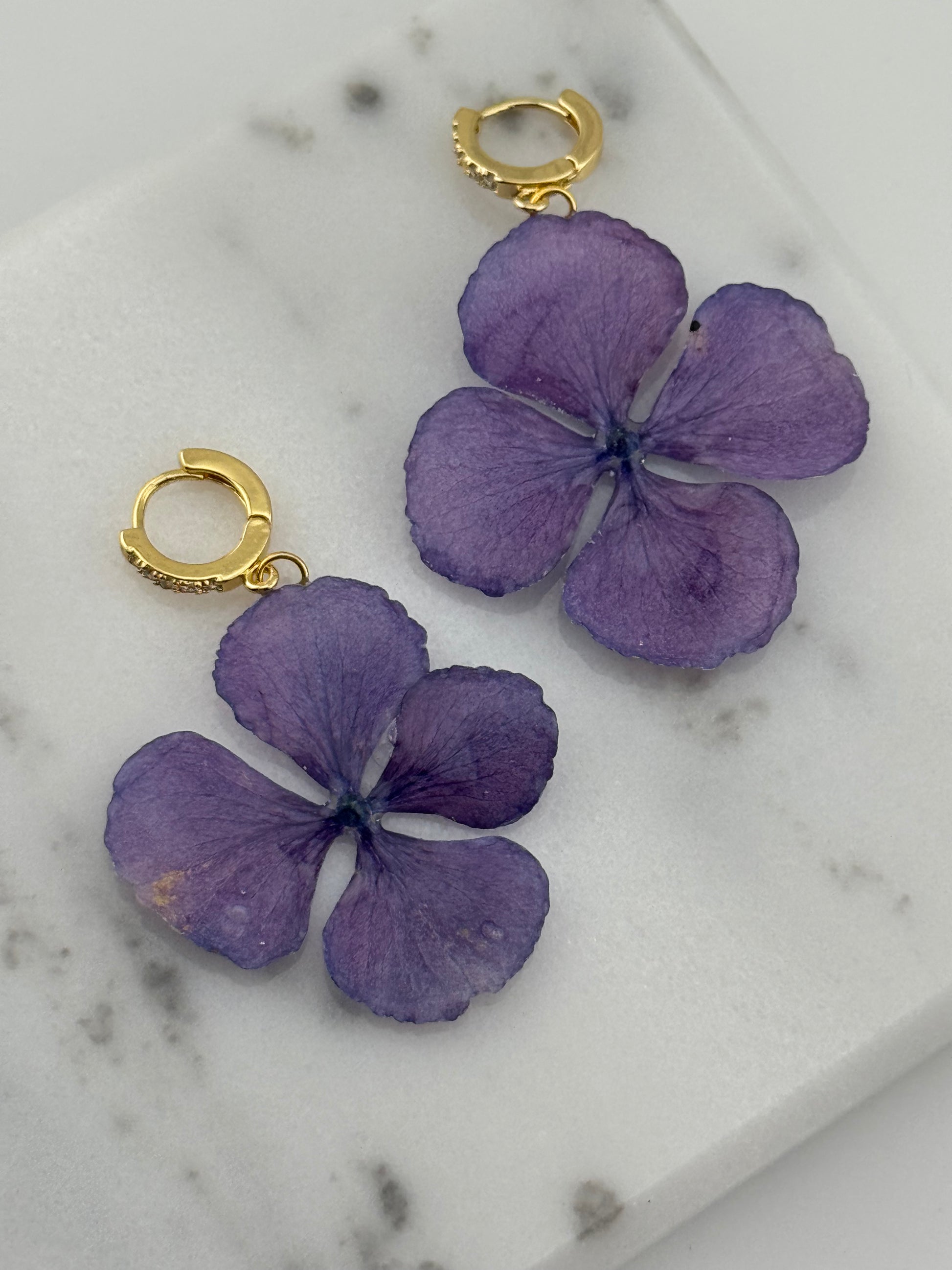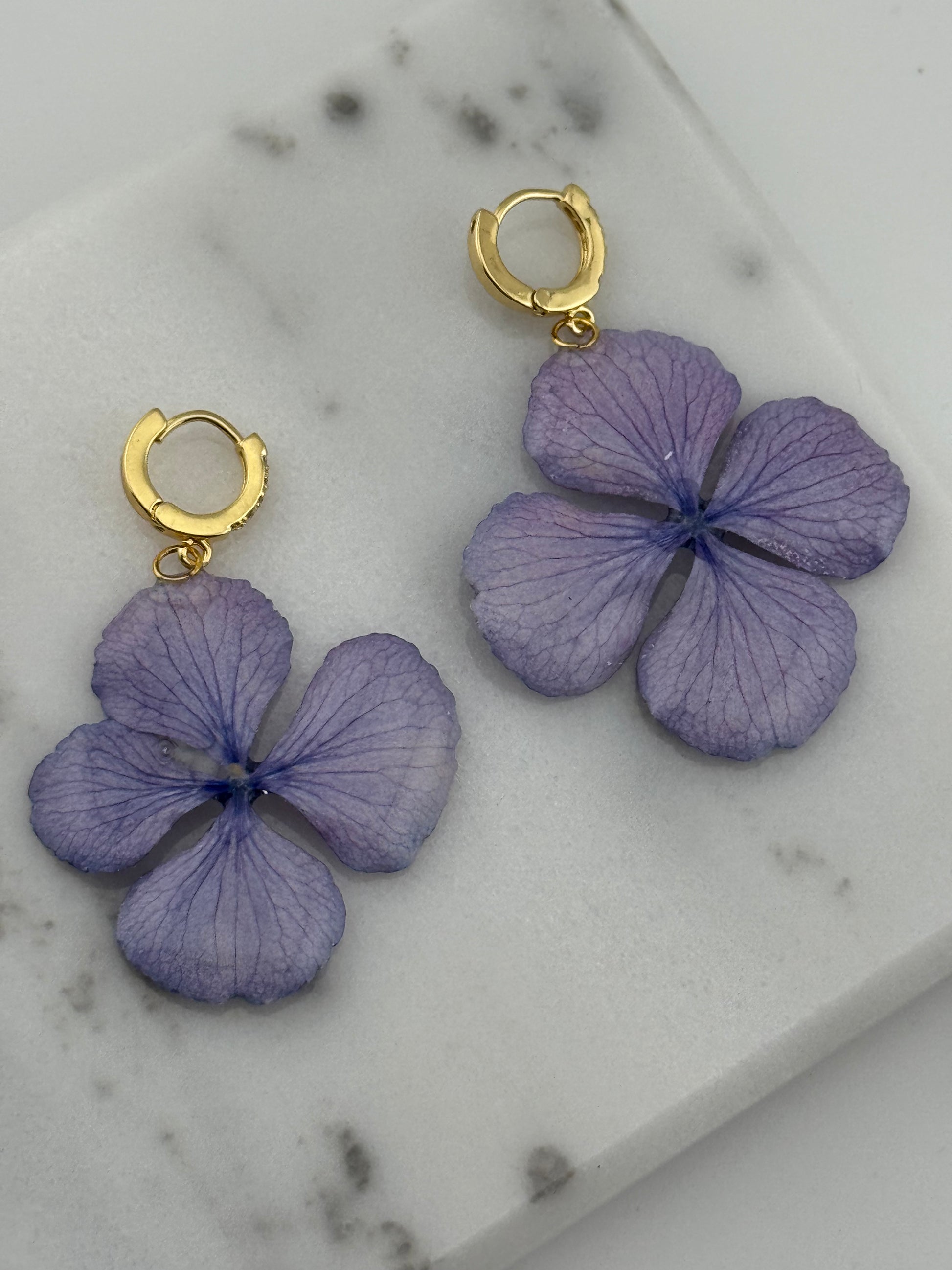 Echte Blütenohrringe aus Hortensien- Handgefertigt mit UV Harz #458
