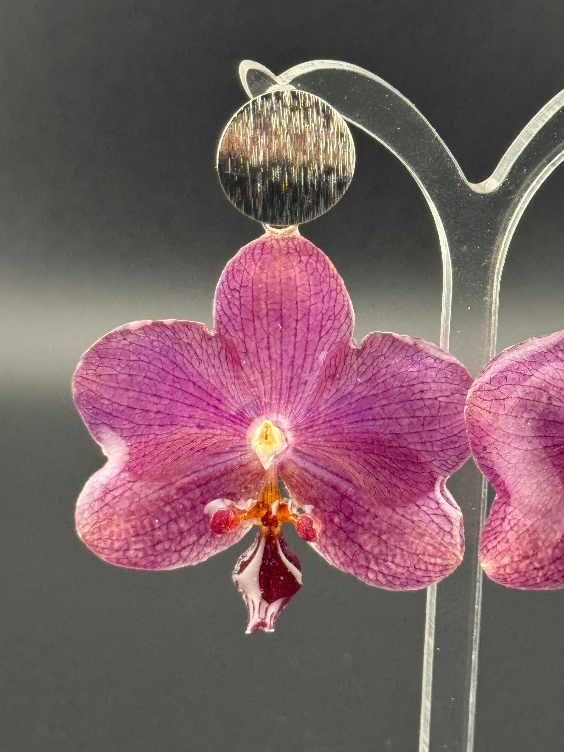 Diese Ohrringe bestehen aus echten, getrockneten Orchideenblüten und wurden mit viel Liebe zum Detail in UV-Harz eingefasst. 🌼