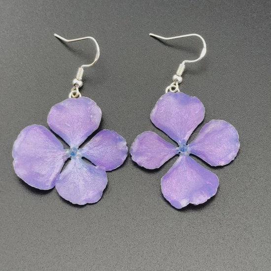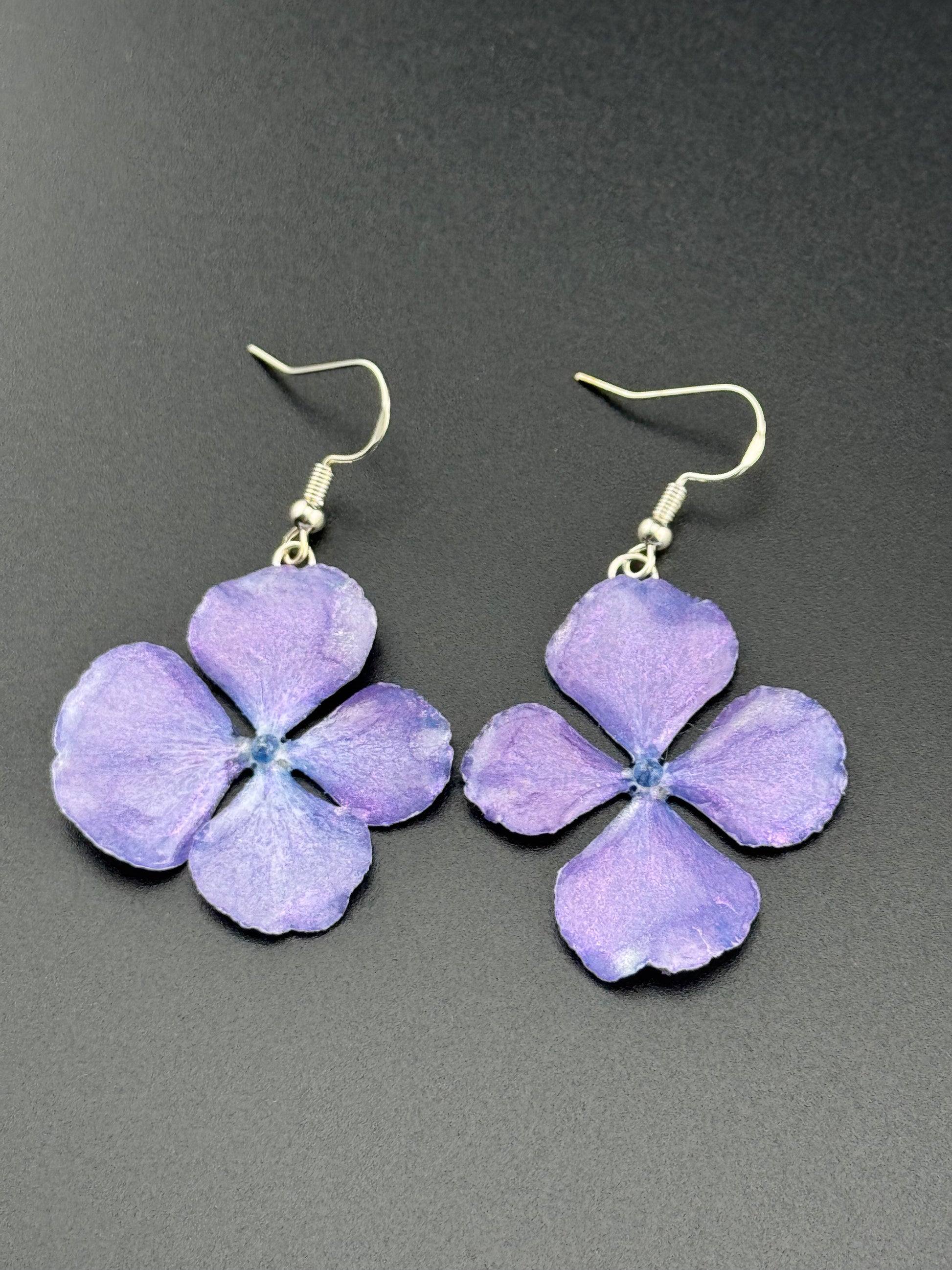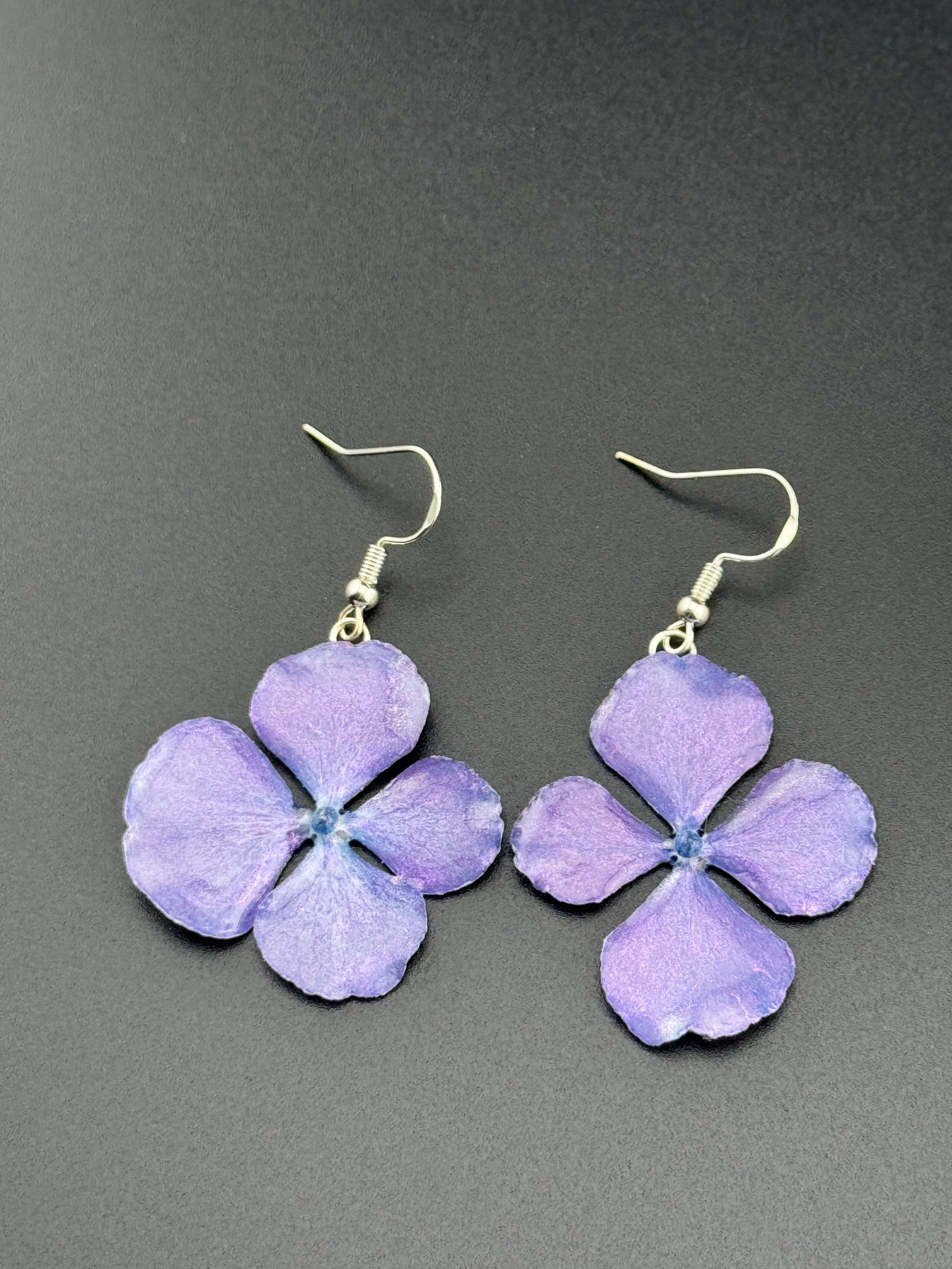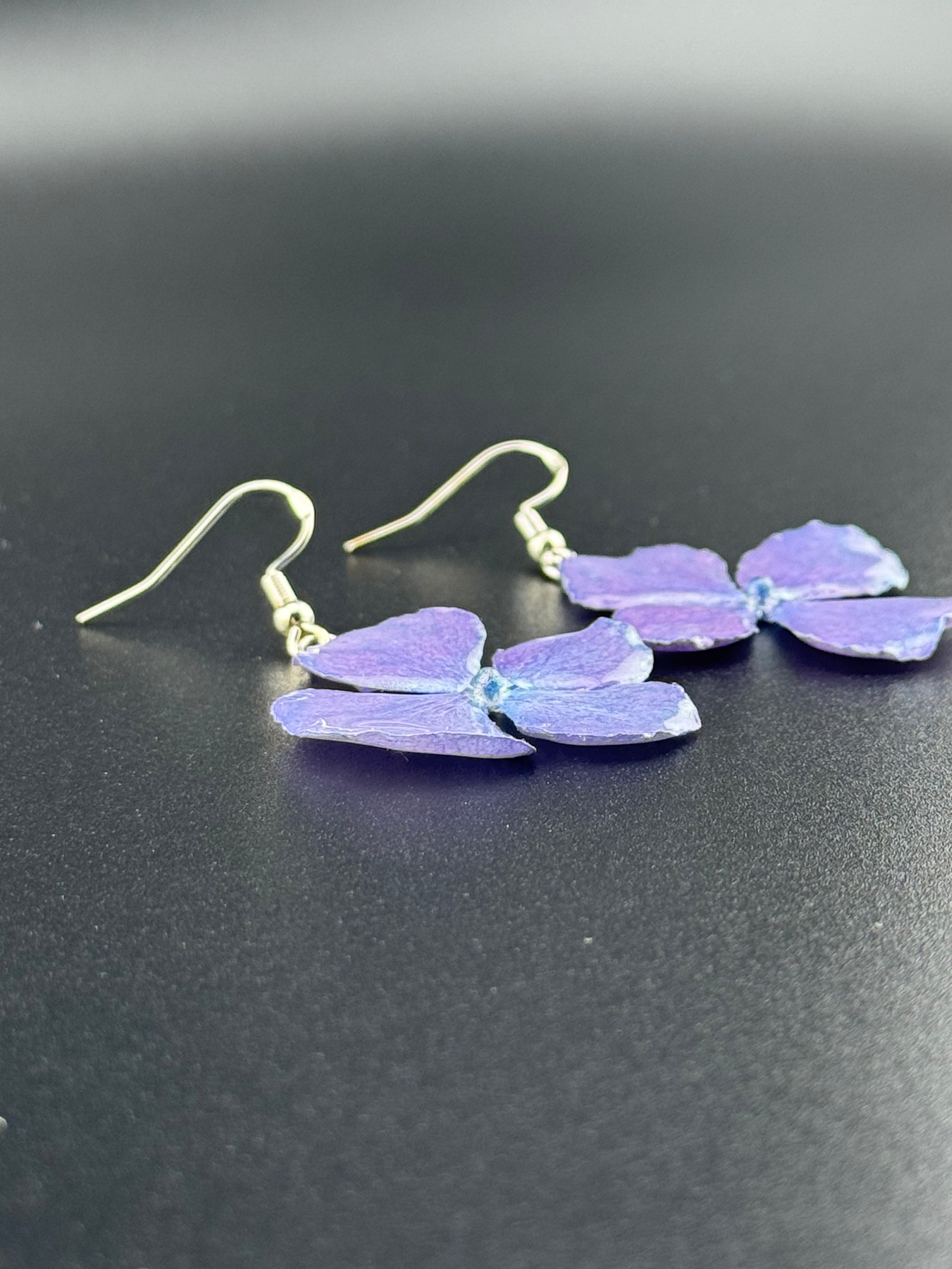 Handgemachte Blüten- Ohrringe aus einer echten Hortensienblüte - Handgefertigt mit UV Harz #473