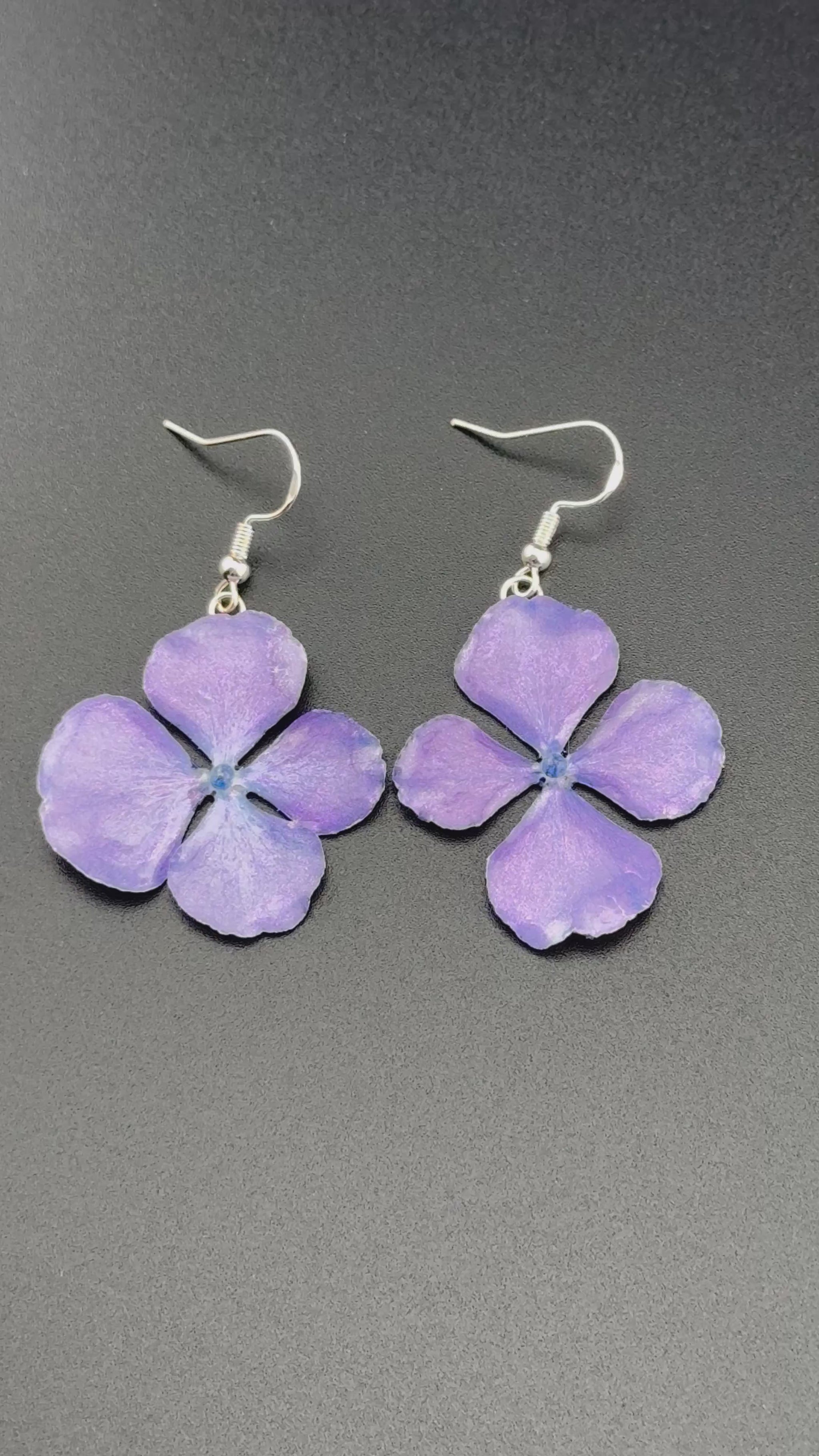 ✨ Einzigartige handgemachte Blüten- Ohrringe aus einer echten Hortensienblüte ✨